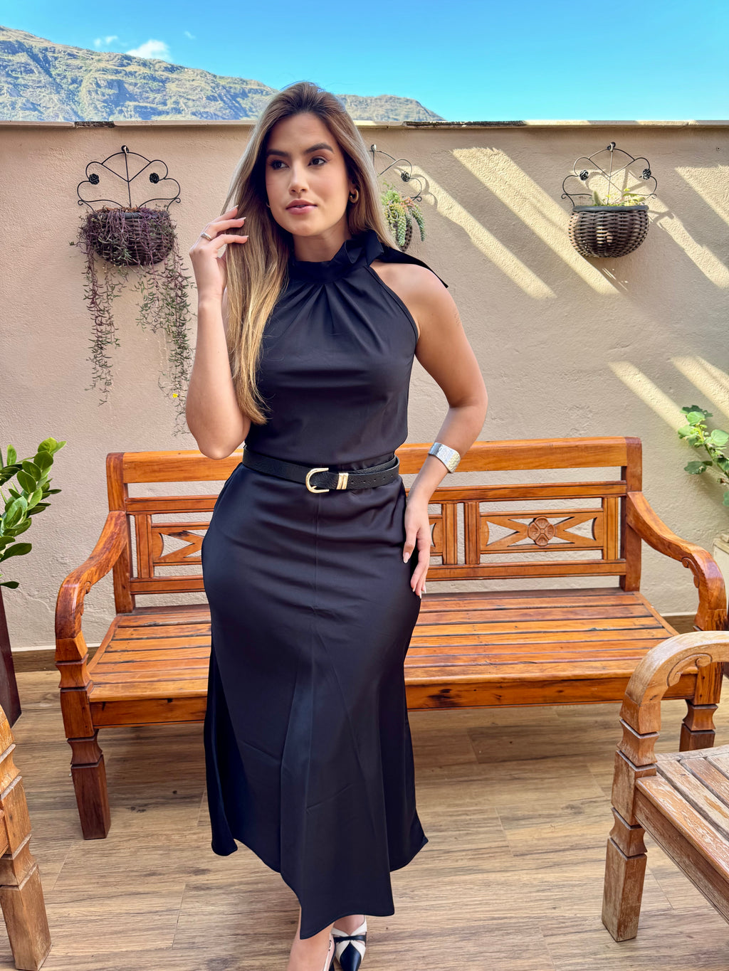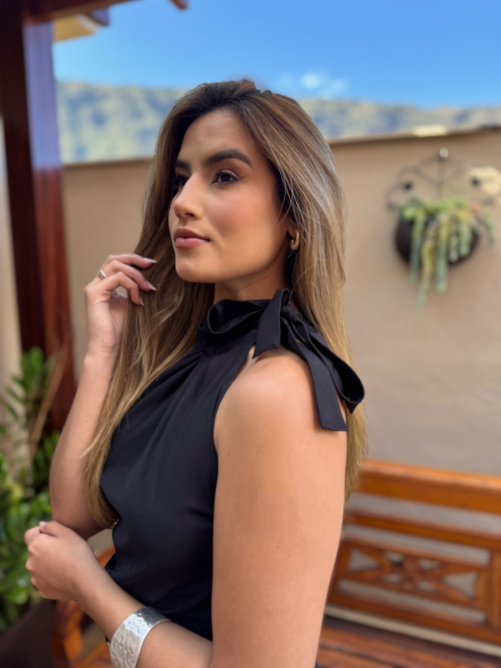 BLUSA REGATA AMARRÇÃO PESCOÇO PRETA