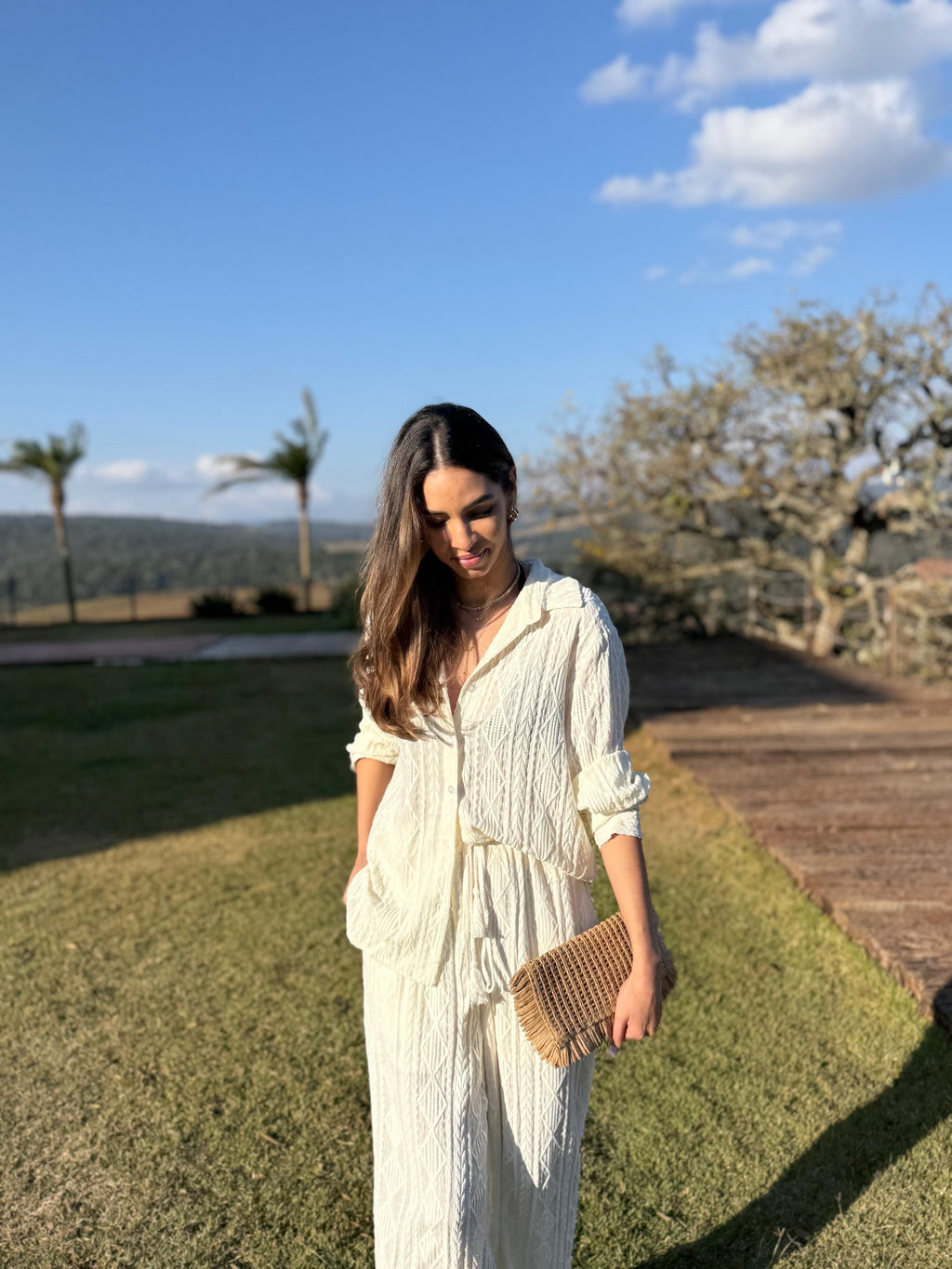 CONJUNTO CALÇA PANTALONA E CAMISA RENDA BRANCO