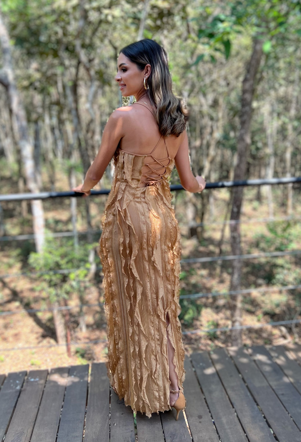 VESTIDO LONGO BABADO DOURADO